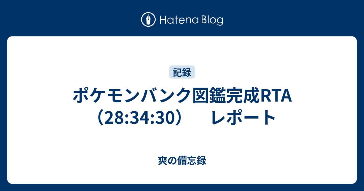 ポケモンバンク図鑑完成rta 28 34 30 レポート 爽の備忘録