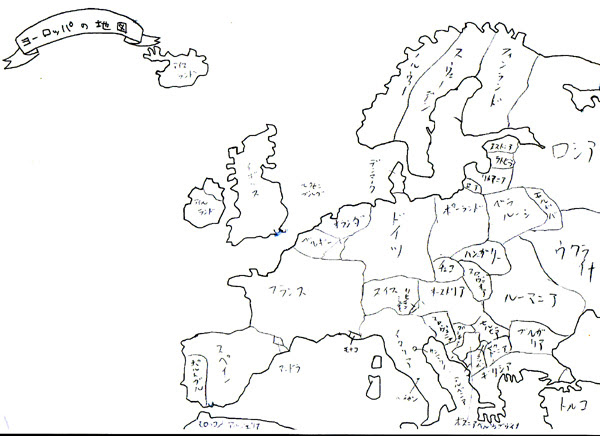 日本人に欧州の白地図をわたし国名を埋めさせる実験