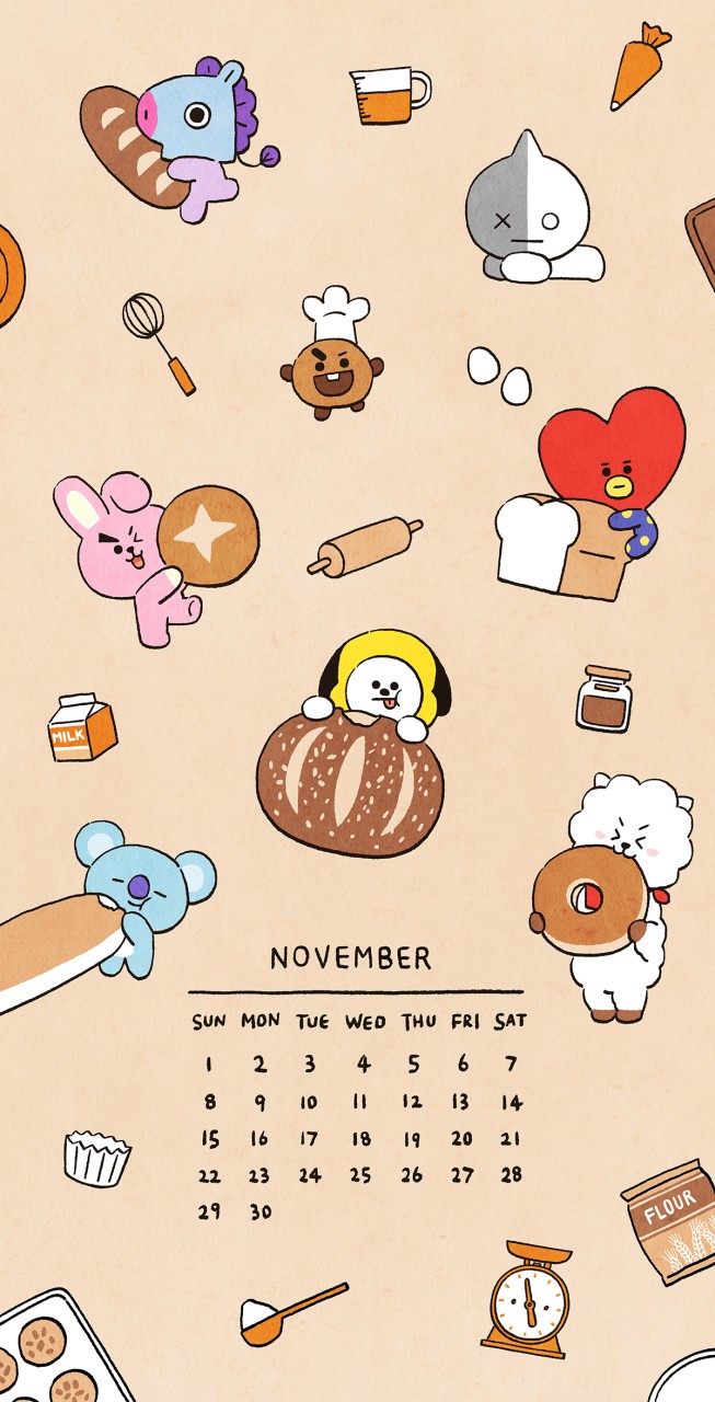 Bt21 Japan Official 今月は幸せパンパン 11月 カレンダー 壁紙 ベーキング イラスト アートワーク パン 可愛い壁紙 グルメ キャラクター Bt21